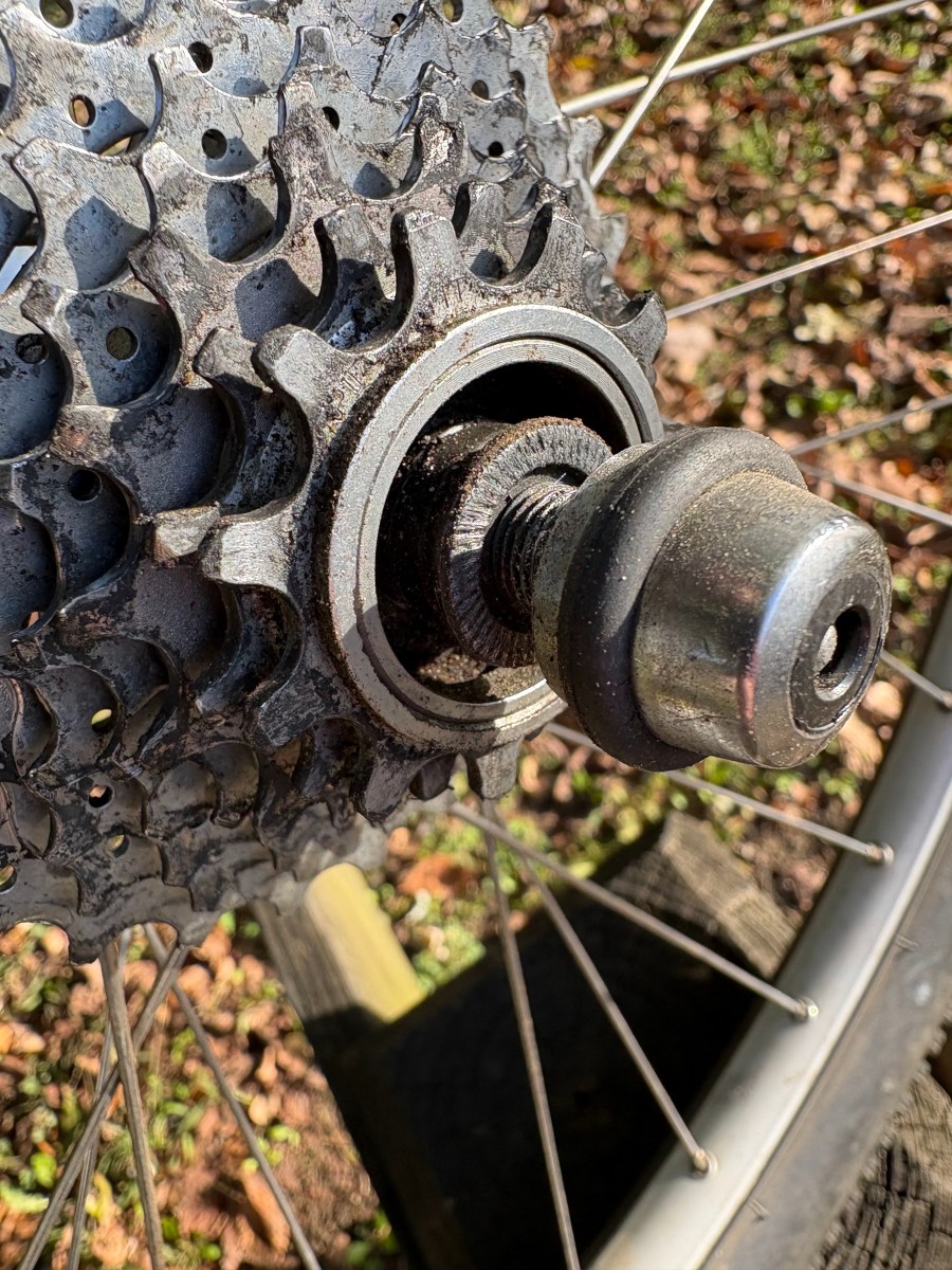 To evaluation, it’s a 7-speed hub, and an 8-speed Hyperglide cassette, but it lacks a lockring.