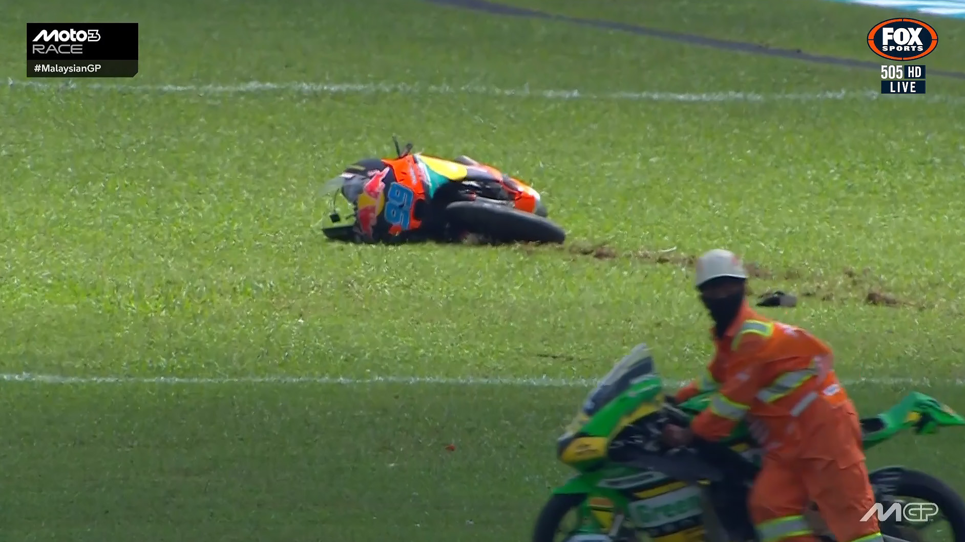 Each riders suffered accidents after a collision on the sighting lap of the Moto3 race at Sepang in Malaysia and had been flown to a close-by hospital.